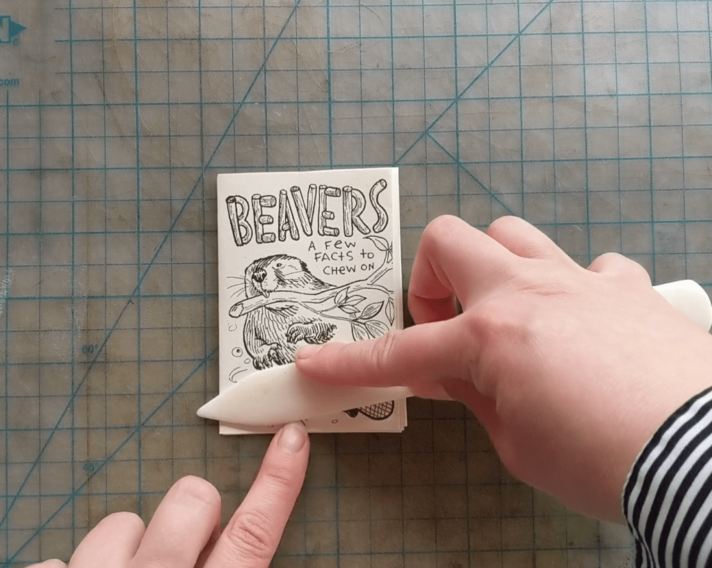 Bone folders are great for paper-folding crafts. This step is to make the zine edges look really clean.