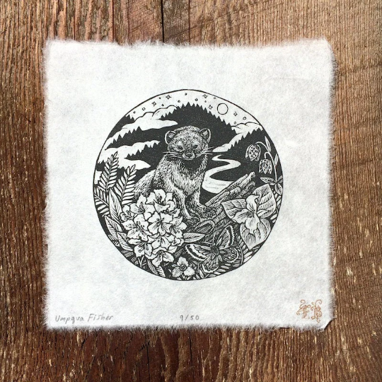 By 2019, I considered printmaking my primary focus as an artist for several years. Many of the prints featured on this page were in my first first solo show “Paw Prints” at Black Butte Center for Railroad Culture in 2019.