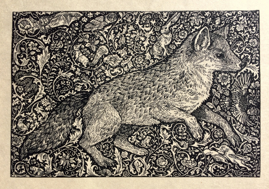 The swirling plants and animals were influenced by William Morris (1832-1896) and his elaborate designs. My version is more chaotic.